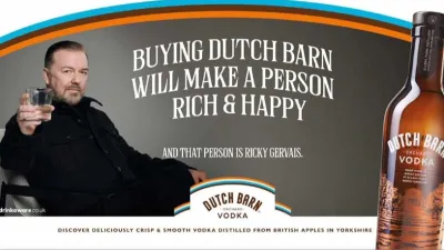 Verjetno najbolj priljubljeni komik današnjega časa, Ricky Gervais, je obraz vodke Dutch Barn. Hkrati je tudi kreativni direktor te razmeroma malo znane znamke.