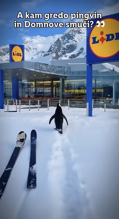 Lidl Slovenija je združil dva trenda. Pingvin in Domnove smuči, ki so v Oberstdorfu nesrečno zdrsnile po naletu skakalnice, so na poti v Lidl.