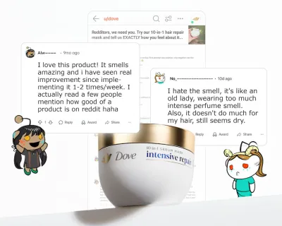 Znamka Dove je ubrala nekonvencionalen pristop in se obrnila na verjetno najbolj iskreno platformo na spletu – Reddit. Skupaj z agencijami David London, AKQA Paris in WPP Media je Unileverjeva znamka anonimne uporabnike Reddita pozvala, naj povsem iskreno ocenijo izdelek Dove Intensive Repair 10-in-1 Serum Mask, svojo najbolj nagrajeno masko za lase v letu 2025.