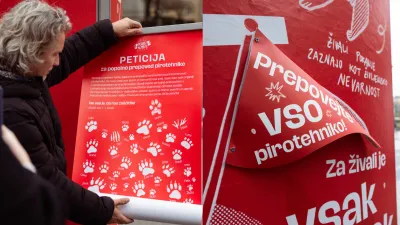 »Postavili smo triptih – poziv k popolni prepovedi pirotehnike, ki je ohranil vizualni jezik kampanje, a jasno naslovil odločevalce. Interaktivni element ‘tear-off’ rdečih zastavic je mimoidočim omogočil, da so poziv simbolno odnesli s seboj ali ga pustili pred institucijo,« opisujejo.