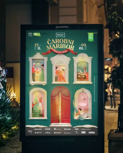 V sodelovanju z Visit Maribor so pripravili celostno praznično komunikacijo, ki zajema tiskane oglase, zunanje oglaševanje, promocijska gradiva, digitalne vsebine ter praznično označevanje mesta. Poseben poudarek je namenjen temu, da vizualna podoba ne deluje zgolj dekorativno, temveč tudi vsebinsko podpira programsko raznolikost in živahnost prazničnega dogajanja v mestu.